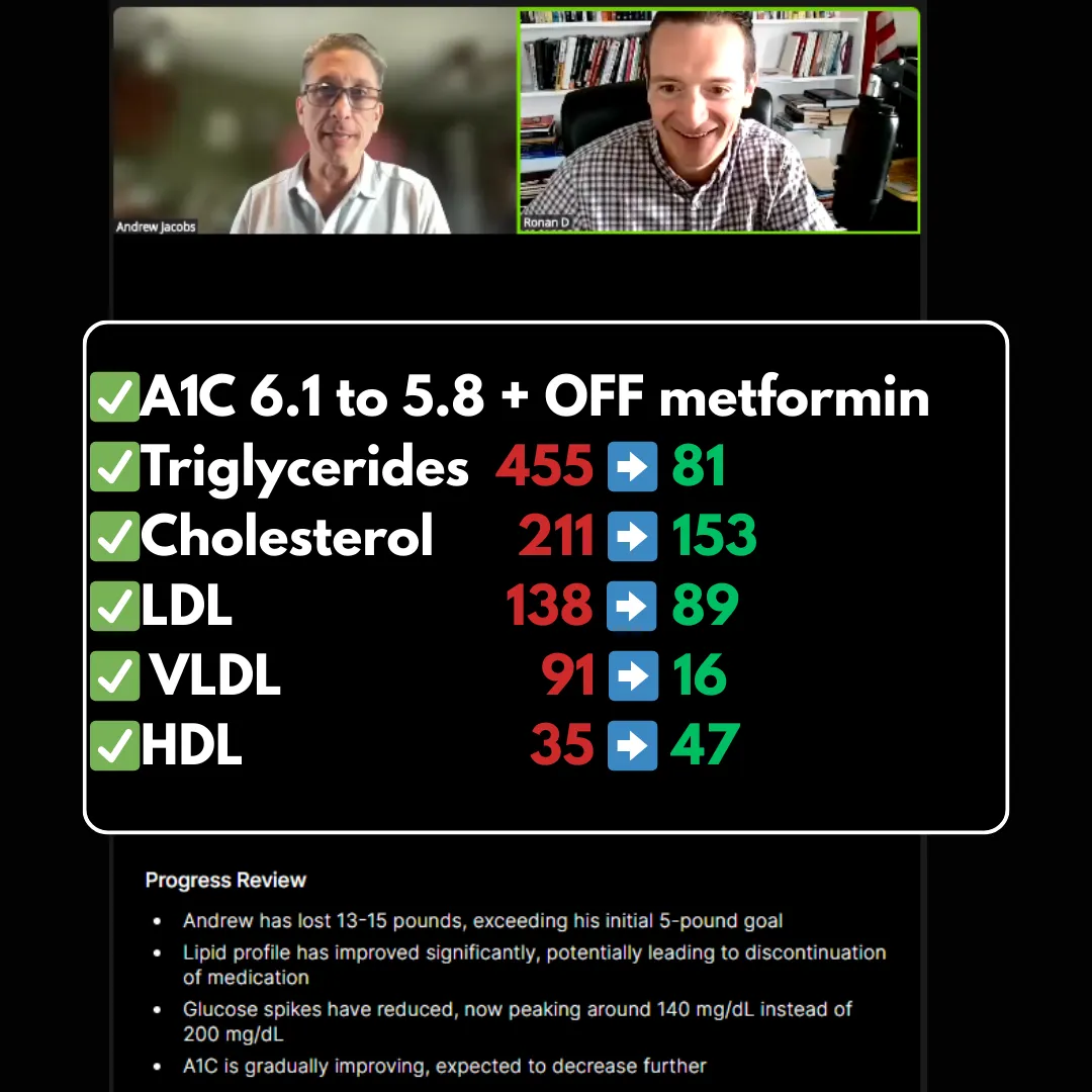 40 lbs lost. Off insulin. He didn’t just manage insulin resistance — he broke it.